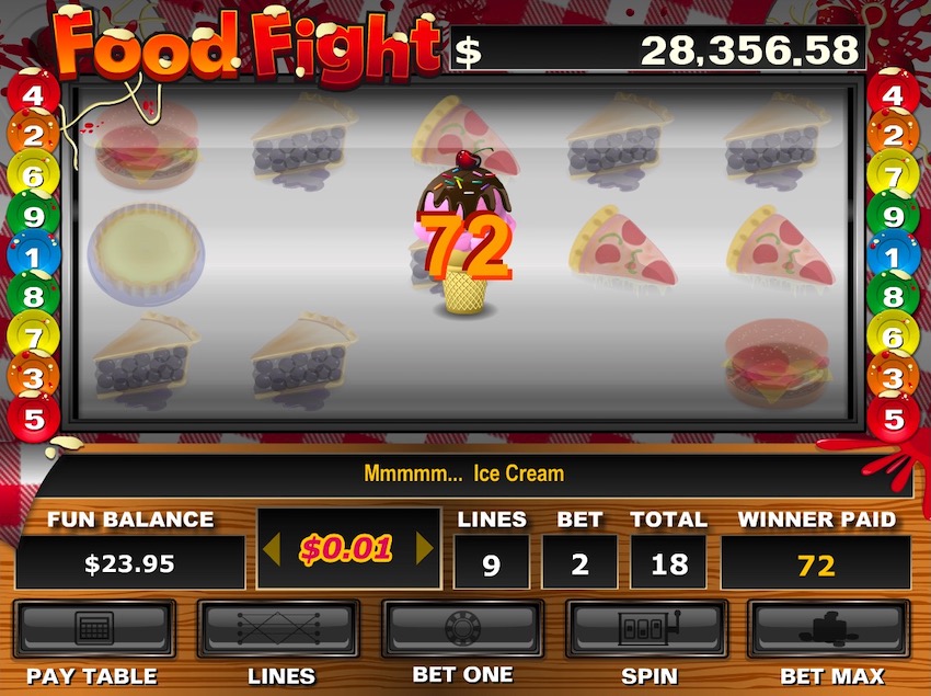 - Bonus Game: There are two bonus games in Food Fight, the Ice Cream Scatter Bonus and the Food Fight Bonus Round.